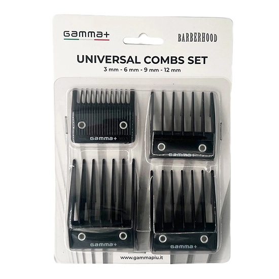 Gamma+ aduce in atentia tuturor frizerilor un set de gratare universale ce usureaza munca tuturor atat in uzul profesional cat si in cel casnic. Setul contine 4 gratare cu dimensiunile 3mm, 6mm, 9 mm, 12 mm